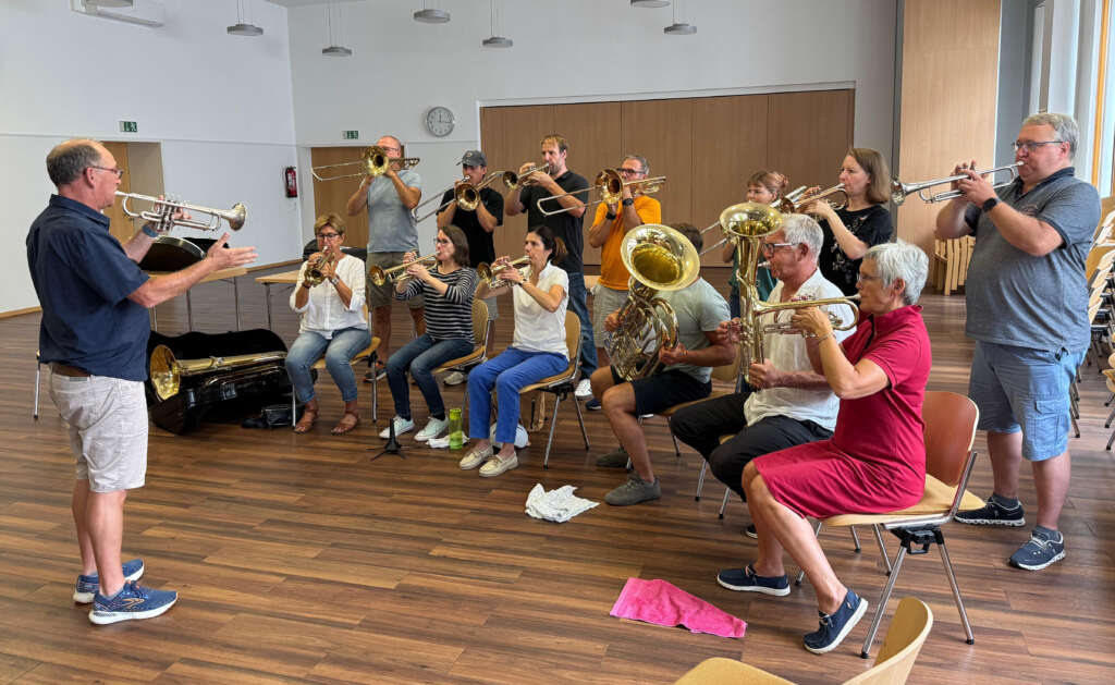 WIR – das sind Bläser und Bläserinnen zwischen 15 und 85 Jahren, die Spaß haben am gemeinsamen Musizieren.  Von der Filmmusik über Gospel bis hin zum klassischen Choral erarbeiten wir uns Stücke für die unterschiedlichsten Anlässe. Vom Blatt Spiel“ ist nicht Voraussetzung.  Wir erarbeiten uns die Literatur in kleinen Schritten. Noten gibt es in B und C Notierung.