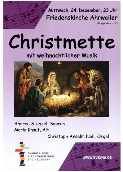 Der Gottesdienst steht im Zentrum unseres Gemeindelebens. Wir feiern Gott auf vielgestaltige Weise. Leider steht uns seit der Flut vom Juli 2021 die Martin-Luther Kirche in Bad Neuenahr nicht zur Verfügung. Unsere Hauptgottesdienste finden daher z.Zt. in der Friedenskirche in Ahrweiler und gelegentlich im Gemeindehaus statt. Außerdem bieten wir besondere Formen für Kinder, Familien, Patienten der Kliniken oder die Bewohner der Seniorenheime an.